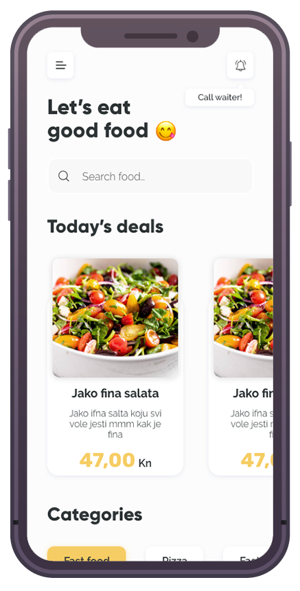 Gosti također mogu naručiti proizvode s Vašeg cjenika. Narudžba se odmah evidentira u Vašem sustavu i obavještava konobare.*